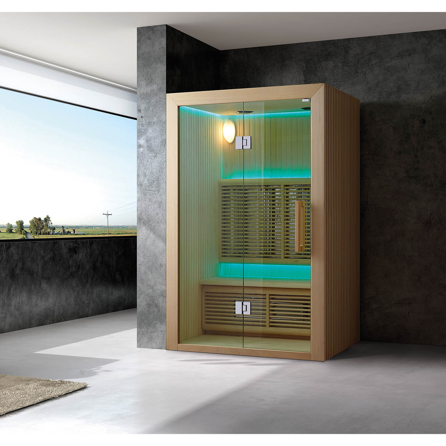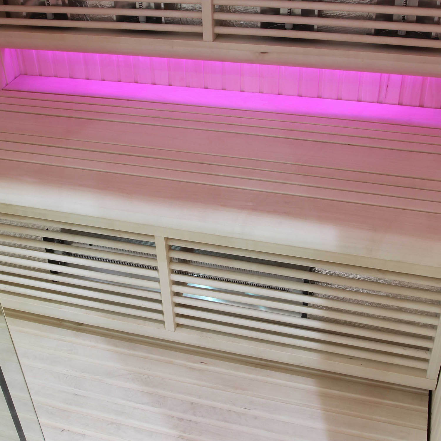 Внутри сауны используется светодиодное освещение. Цвет можно изменить на красный, зеленый, синий и градиент, создавая уютную и расслабляющую атмосферу.