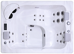 Компактный гидромассажный СПА-бассейн Joy Spa JY 8005 предназначен только для двоих. Чаша бассейна имеет прямоугольную форму, где два человека могут расположиться друг напротив друга полулежа. Благодаря своим небольшим размерам данный бассейн можно установить не только в частном доме, но и в квартире. В модели предусмотрено 15 форсунок, через которые под напором подаётся вода или воздух. Расположение форсунок продумано так, чтобы обеспечивать качественный полноценный массаж спины и ног. Благодаря тому, что для каждого места расположение форсунок уникально, вы можете наслаждаться гидромассажными процедурами каждый раз по-новому.